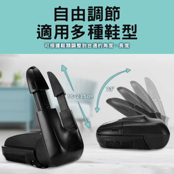 可自由調節烘鞋機角度跟高度,不管是布鞋、拖鞋、靴子等都適用