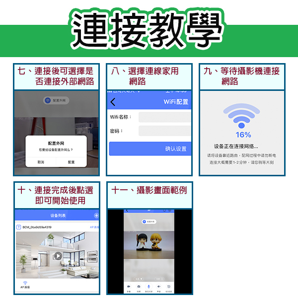 (注意: 之後攝影機都不可離開此家用WiFi範圍不然會斷線,可使用手機自身網路遠端觀看)