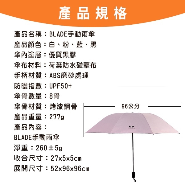 【coni mall】BLADE手動雨傘 現貨 當天出貨 台灣公司貨 陽傘 雨傘 折疊傘 抗UV 反向折疊傘 八骨
