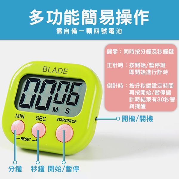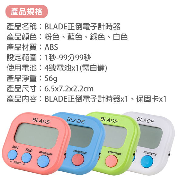 產品內容:BLADE正倒電子計時器x1、保固卡x1