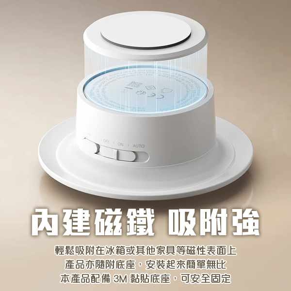 底部內建磁鐵,可輕鬆吸附於冰箱等有磁性的表面上