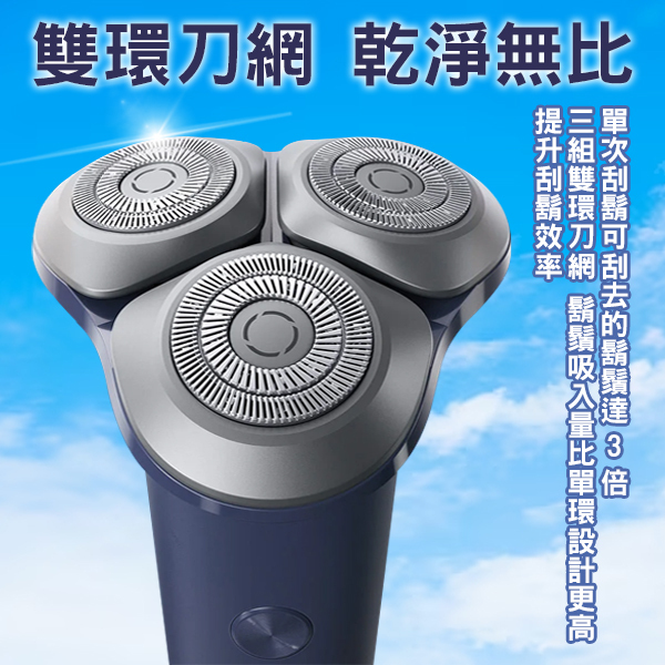 三組雙環刀網,鬍鬚吸入量比單環設計更高,提升刮鬍效率