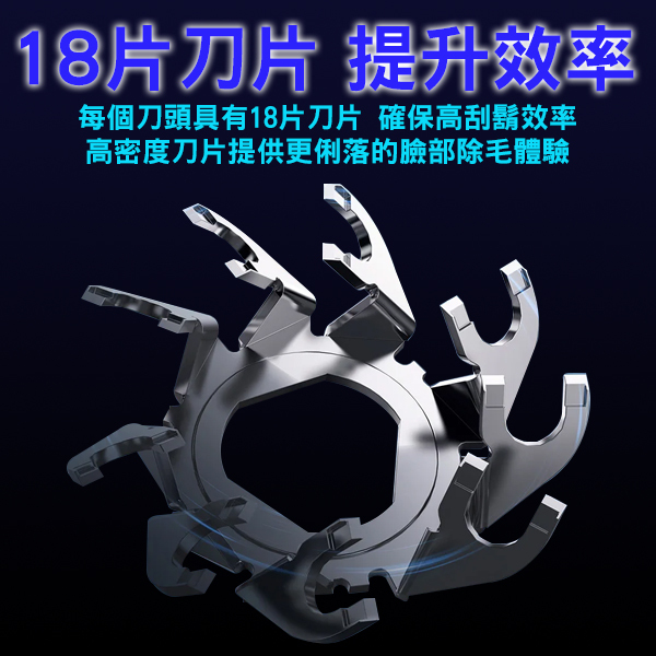 3個刀頭,每個刀頭具有18片刀片,6種刮鬍角度