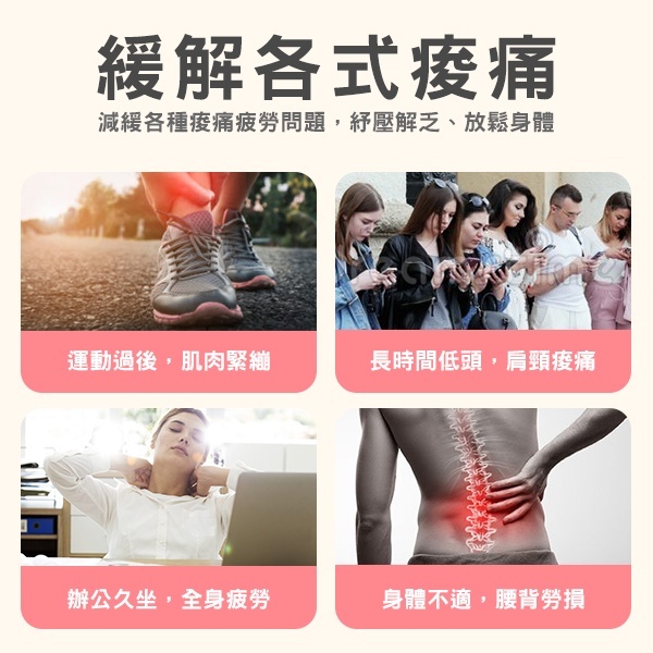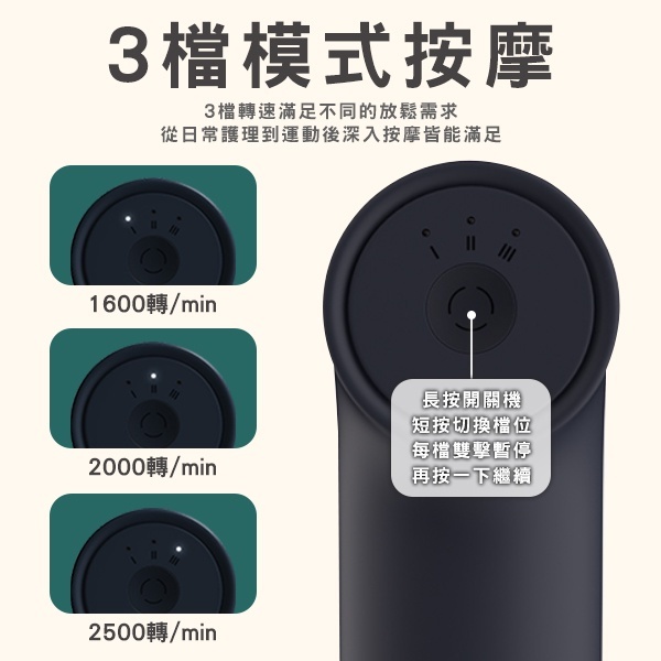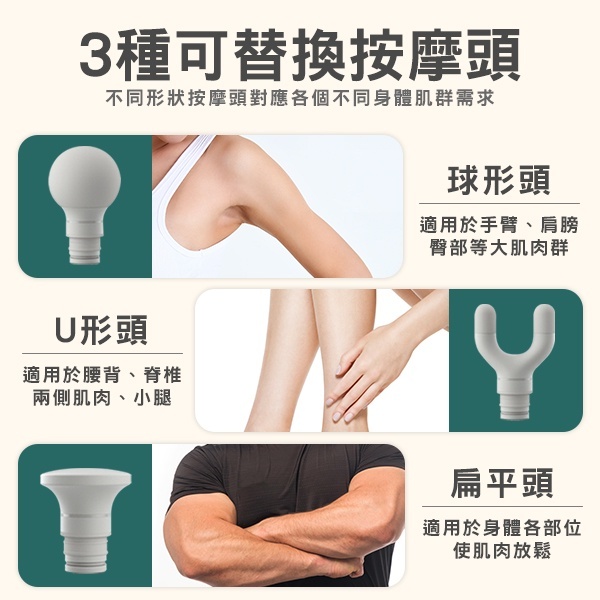 三檔力度及三種按摩頭,滿足多種需求、緩解各式痠痛