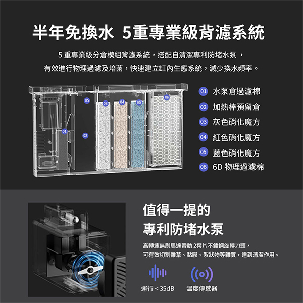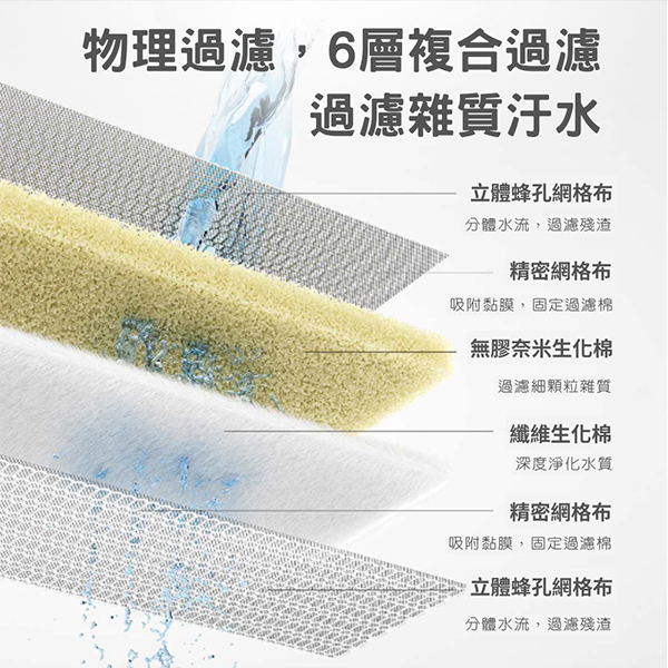 產品內容:主機x1、生化/物理過濾模組(此模組內建背濾倉中)x各1、