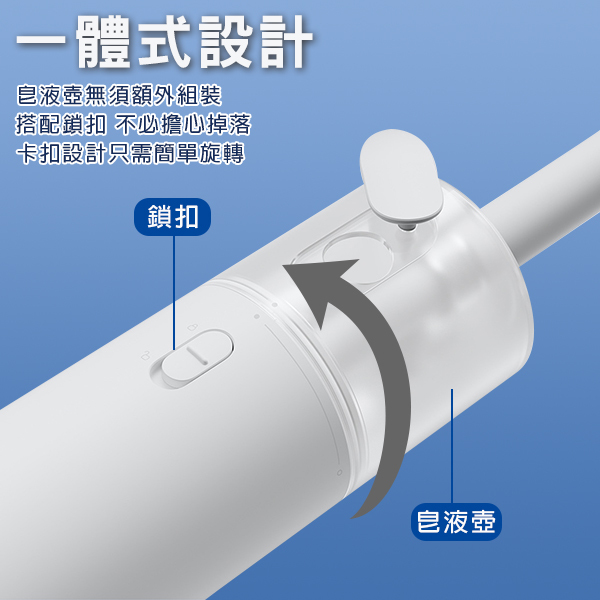 一體式皂液壺設計,搭配鎖扣設計,只需簡單操作即可使用